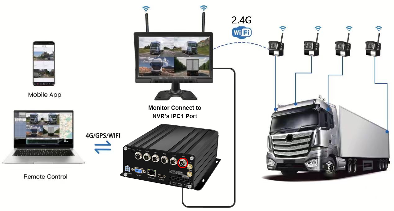 Ekstra 3CH Kablolu IP Kamera GirişleriCarleader 10,1 inç 7CH Kablosuz HDD Mobil NVR Sistemi, filo yönetimi için tasarlanmış son teknoloji mobil kablosuz NVR sistemidir. Sistem, 2,4 GHz sinyal aracılığıyla 10,1 inç kablosuz röle monitörüyle eşleşen 4 adet kablosuz IP kamera kullanır, ardından röle monitörünü ve NVR IPC bağlantı noktasını 6PIN havacılık konektörü aracılığıyla bağlar, ayrıca ekstra 3CH kablolu IP kamera girişlerini destekler.