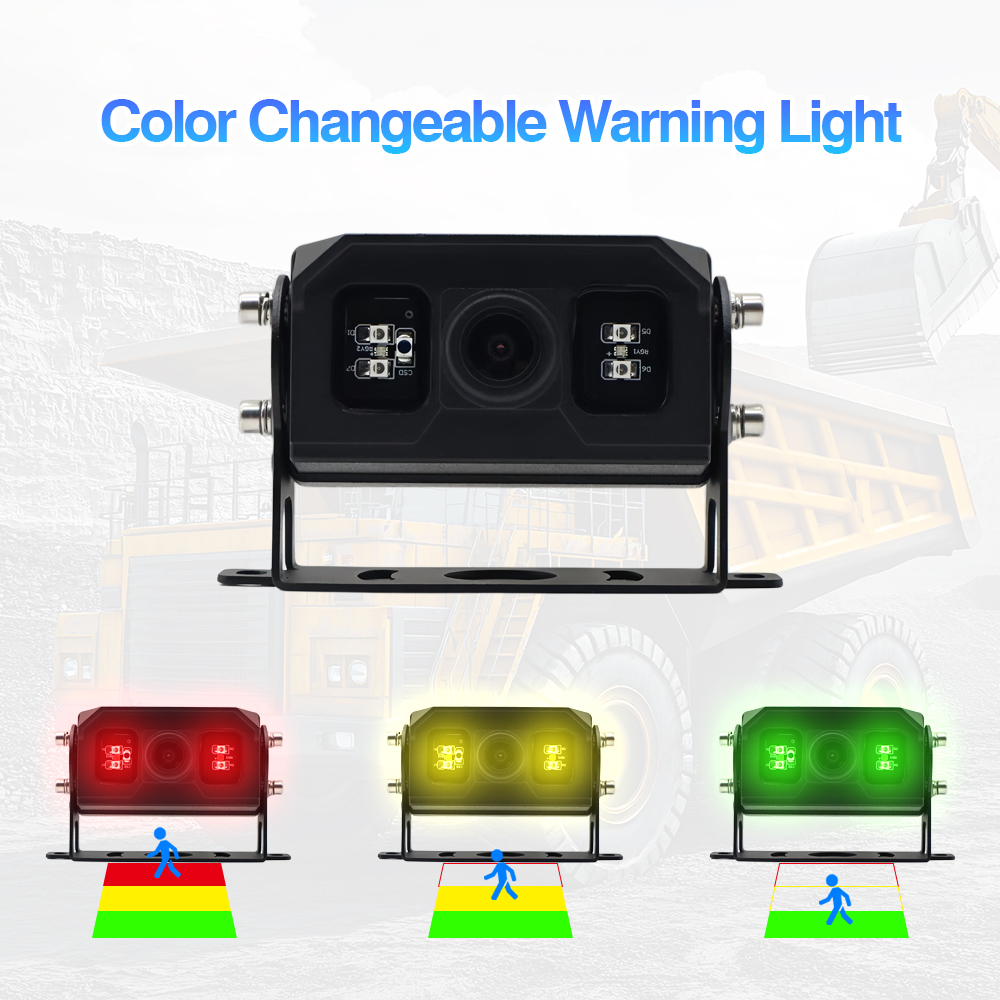 AI BSD kamera dahili renk değiştiren uyarı ışığı, nesne ilgili algılama alanına (Kırmızı, Sarı, Yeşil) girdiğinde ışık rengini değiştirebilir.