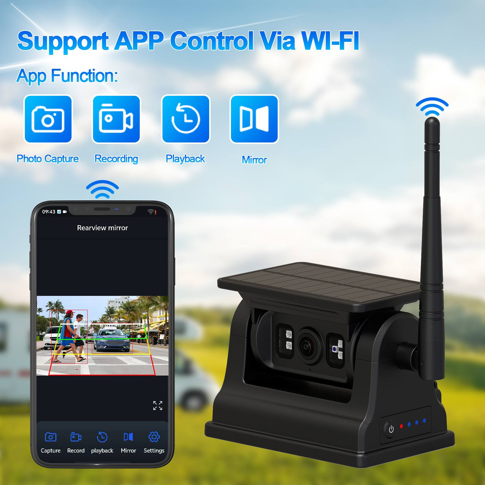 9 İnç IPS 2AV AHD Araç Monitörü CarPlay Multimedya DesteğiAraba Lideri AI Algılama Güneş Enerjili Şarj Edilebilir Manyetik Tabanlı Geri Dönen WIFI Kamera, kablolama gerektirmez, manyetik tabanla kolay kurulum, Güneş enerjisiyle çalışan kablosuz geri görüş kamerası, dahili büyük kapasiteli 10500mAh şarj edilebilir pil ve gece görüş fonksiyonuna sahiptir, ayrıca güneş enerjisi, enerji tasarrufu ve çevre koruma ile de çalıştırılabilir. Kamera desteği AI algılama fonksiyonu, yaya ve aracı algılayabilir, ayrıcaWIFI üzerinden cep telefonuna bağlanmayı destekleyin, kullanıcının resim çekmesine, video kaydetmesine ve oynatmasına, ayrıca AI kalibrasyonunu vb. ayarlamasına izin verin. Bu kamera, aracınızı güvenli bir şekilde sürmek için araç güvenlik izleme ekipmanı olarak en iyi seçeneğinizdir.