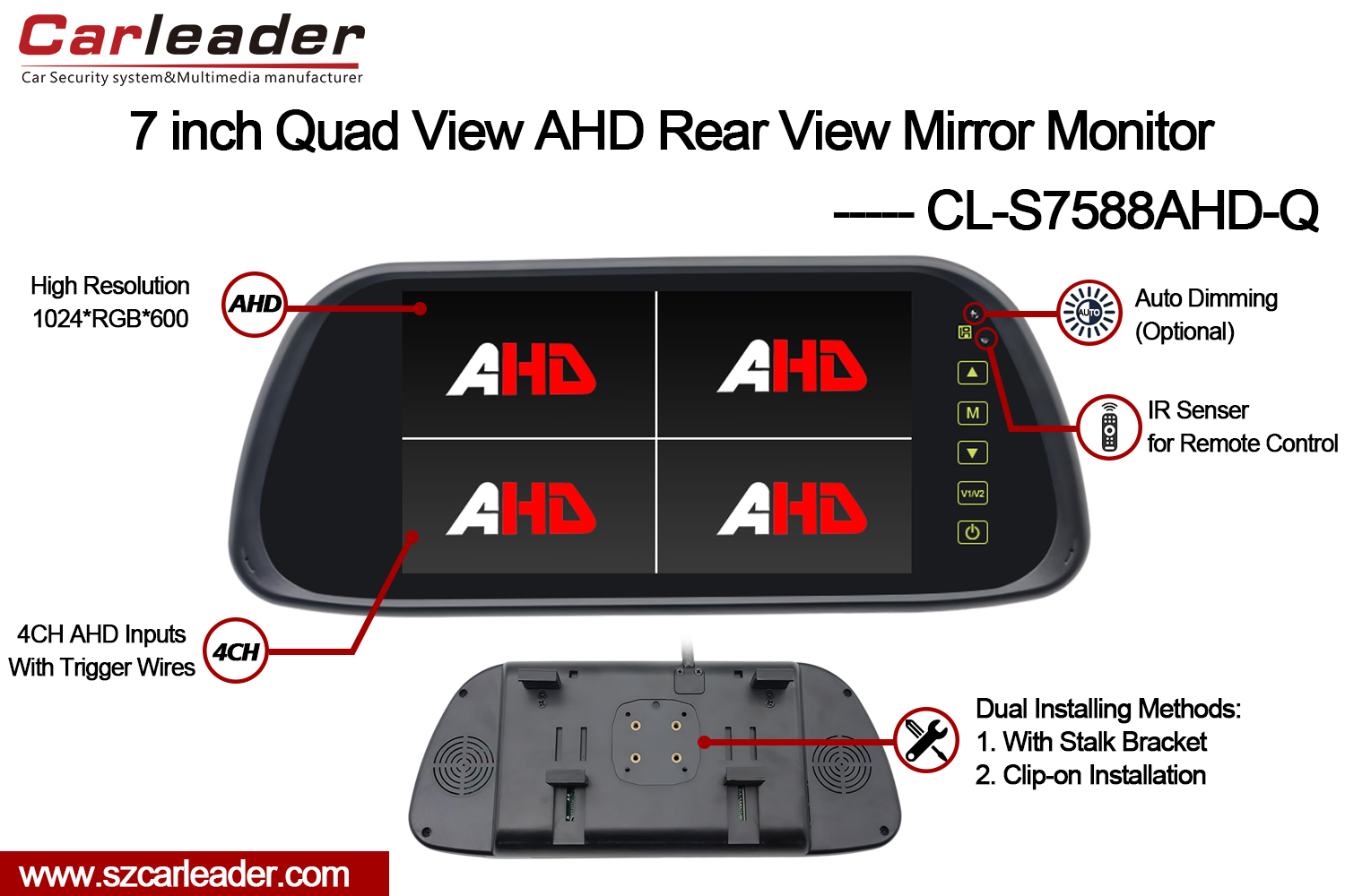 Neden Seçmelisiniz?Araba Lideri7 İnç 4CH Dörtlü AHD Dikiz Aynası Monitör Çift Kurulum Desteği?