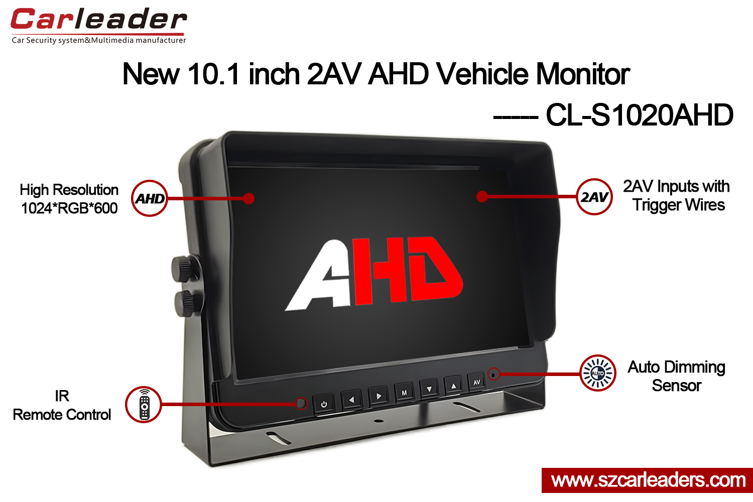 Araba Lideri10,1 İnç 2CH AHD Girişli Araç Yedekleme MonitörüKamyonlar, otobüsler, kamyonetler, karavanlar, okul otobüsleri, tarım makineleri, inşaat makineleri, temizlik ekipmanları vb. için uygundur.