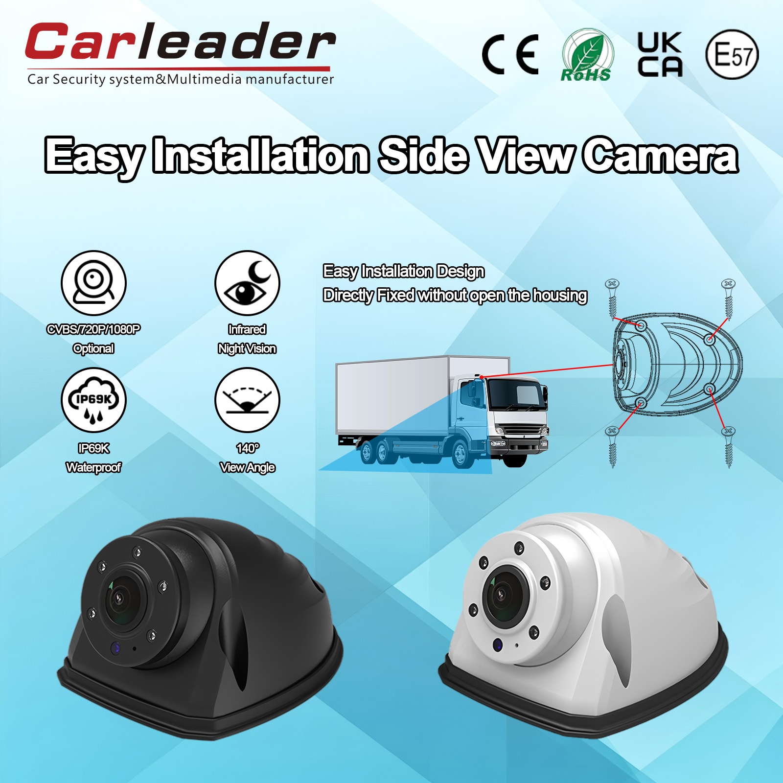 Geniş görüntüleme açısını, mükemmel düşük ışık performansını ve Mükemmel IP69K derecesini birleştiren Carleader Carleader AHD Hızlı Kurulum Ağır Hizmet Yan Görüş Kamerası Beyaz, diğer kameraların başarısız olduğu durumlarda güvenilir görsel farkındalık sağlar. Gerilim seçenekleri ve döner montaj da dahil olmak üzere operasyonel esnekliği, çeşitli sistemlere kusursuz entegrasyon sağlayarak en zorlu koşullarda güvenliği ve operasyonel verimliliği artırır.
